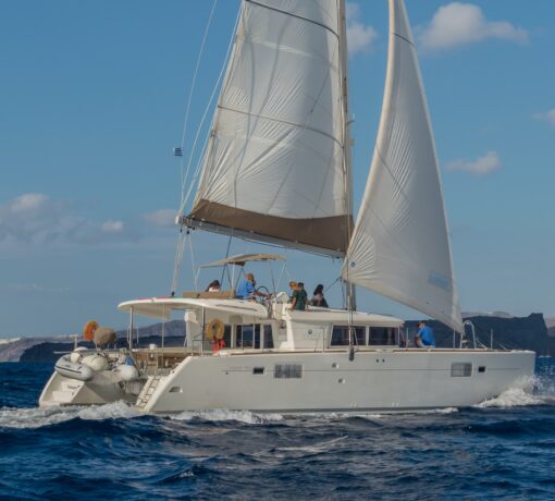What better way to explore Santorini than from the water? Sail the Caldera and the crystal waters of the Aegean Sea, see the towering volcanic cliffs, swim, snorkel, and enjoy delicious gourmet meals. You embark on a gleaming catamaran that will sail you past Akrotiri, to the Red and White beaches, hot springs, sail past the volcano and explore private bays for swimming and snorkeling. You will then stop at a private bay for a delicious BBQ lunch or dinner that will be prepared while you swim and snorkel in a beautiful, secluded bay. The highly experienced staff of Capt. Ted’s Santorini Sailing will provide their legendary hospitality for your adventure and are fluent in both English and Greek. Experience Santorini’s culinary delights while sailing aboard their luxurious catamarans. The family’s award-winning recipes have been featured on the Food Network.