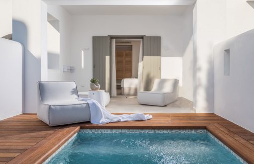 Wisely located only 200 m. away from the breathtaking Agios Prokopios beach in Naxos, this new hospitality jewel is a hideaway of elegant luxury, offering its guests upscale tailor-made services and features; all wrapped up in the excellence of high-end architecture. The hotel embodies the philosophy of Cycladic chic purity and calmness; an ideal setting to unwind and indulge in the carefree island vibes. 18 GRAPES hotel is a place where the outgoing Naxian rhythms blend wonderfully with the serenity of privacy, delivering an outstanding holiday experience.