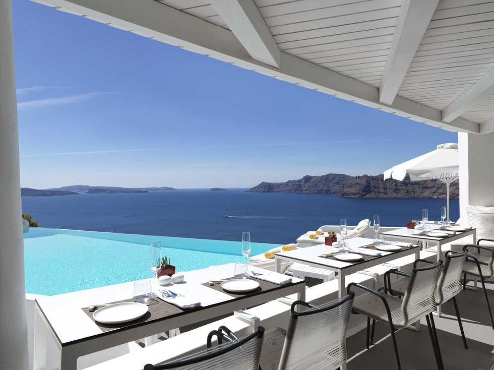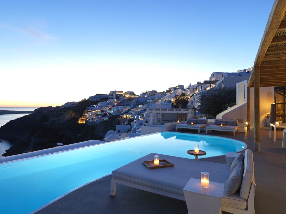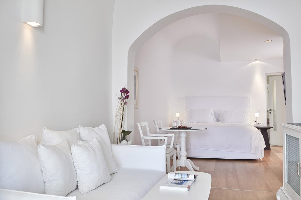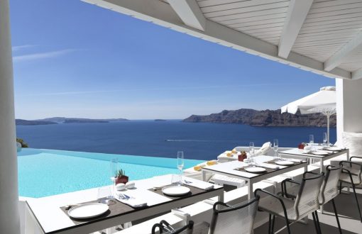 Inspiring deep emotions of enchantment and fascination, Katikies luxury hotel in Oia Santorini is renowned for its unparalleled services, warm atmosphere and sense of romance uniquely combined in an exceptional setting and natural environment, inviting its guests to experience moments of pure luxury at one of the best hotels in Oia Santorini. The awe inspiring view to the caldera and the azure sea from all luxury suites, the sublime Santorini sunsets and perfectly manicured pink bougainvilleas provide the magnificent backdrop for this perennially gleaming, glistening white luxury hotel that spills down the cliffs of the magical Caldera. A luxury hotel rightfully regarded as one of the best hotels in Oia Santorini for its bespoke services and high-end accommodation options.