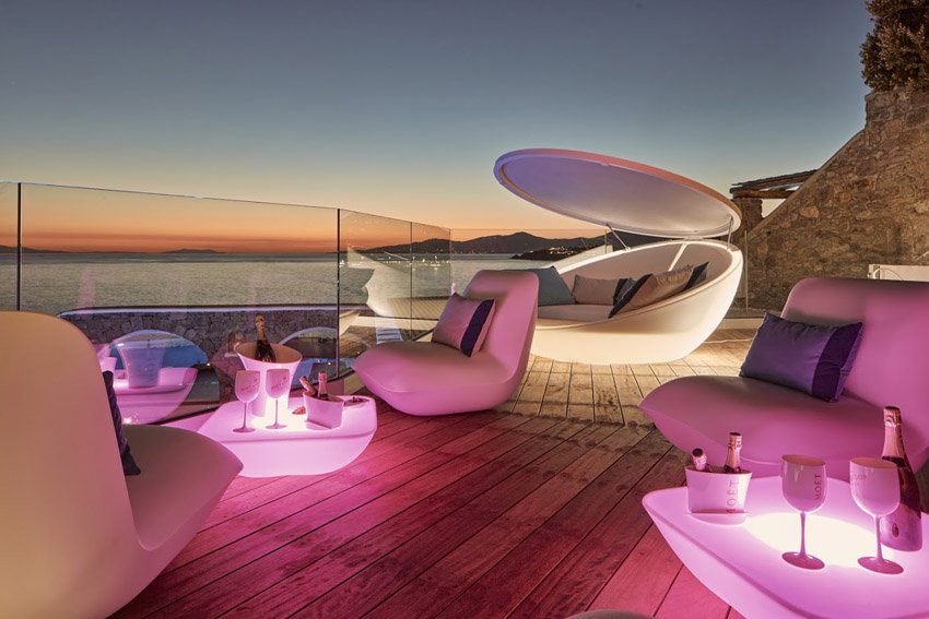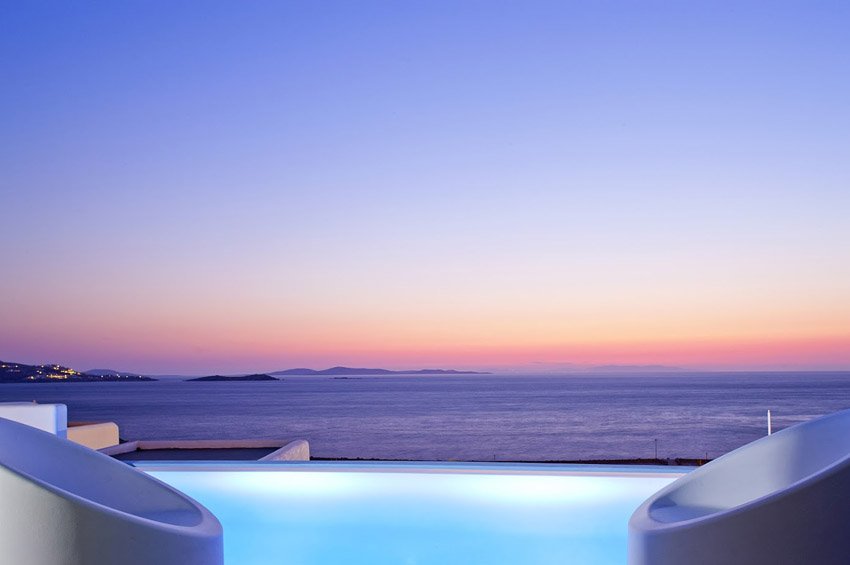 Kouros is a jewel of traditional and modern architecture, which combined with its unique location, a cliff near Mykonos town with panoramic views of the town, the sea, and the breathtaking sunsets, creates the charming mood necessary to fully enjoy our beautiful island.