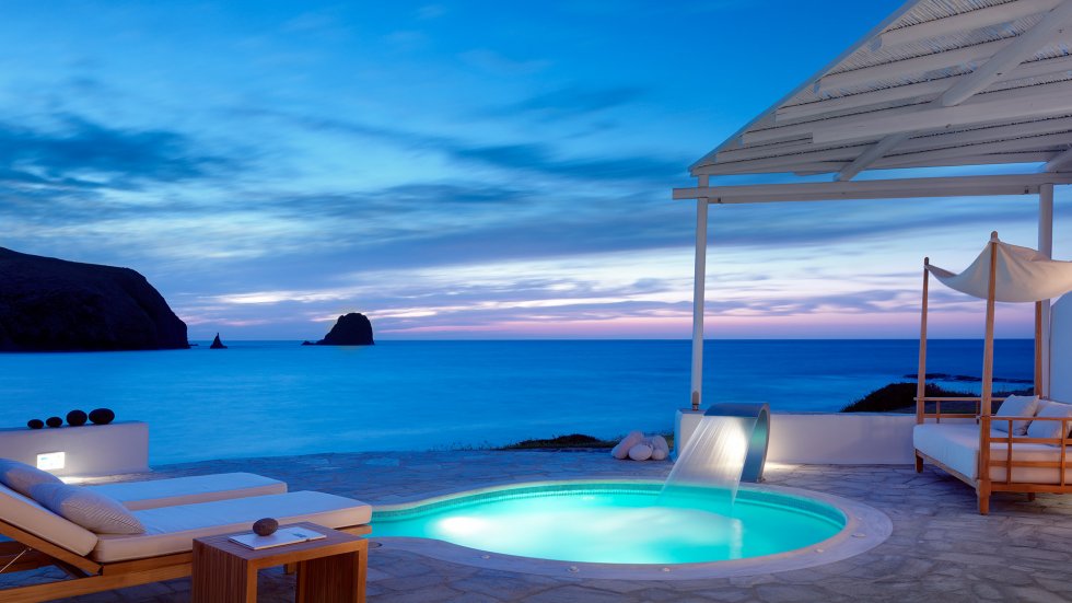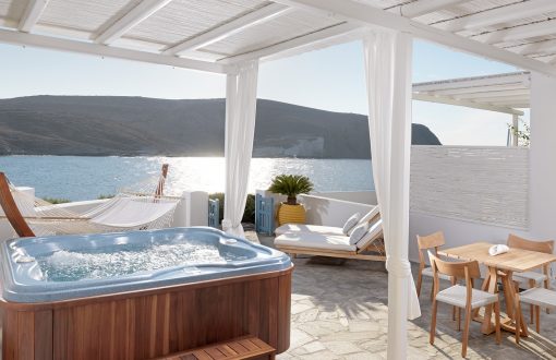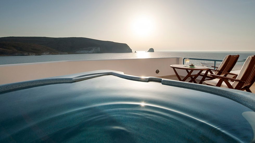 The Melian Boutique Hotel & Spa is a romantic haven of serenity, built at the waterfront of Milos, in the enchanting island complex of the Cyclades. A luxury hotel in Milos endowed with elegance and breathtaking views to the most captivating sunset of the island and the emerald waters of the Aegean Sea.