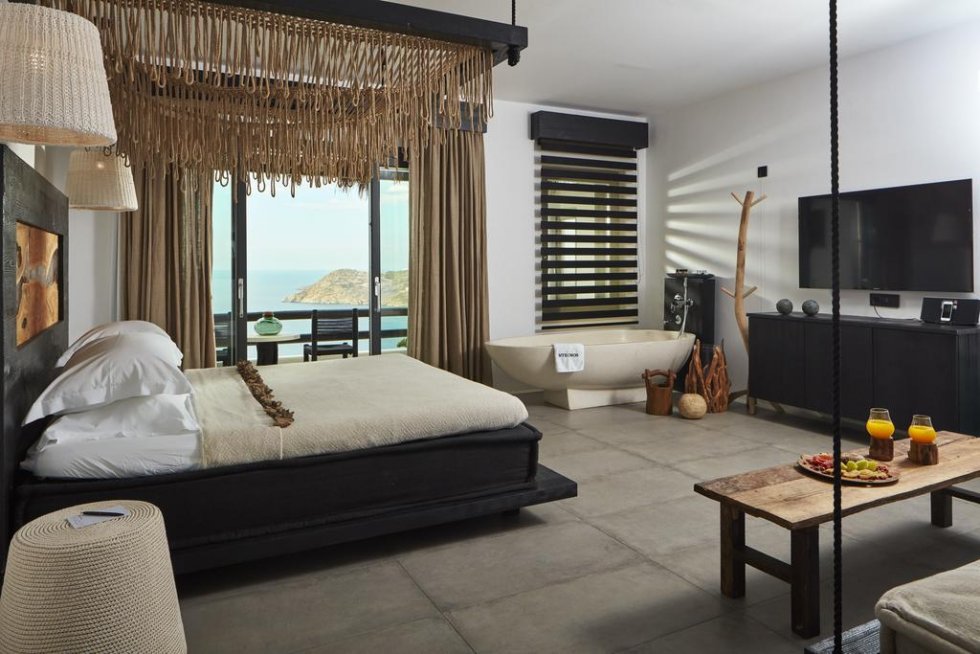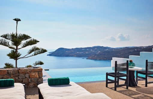Overlooking the deep blue waters of the Aegean Sea from its commanding position 300 feet above famed Elia Beach in Mykonos, the Myconian Utopia Resort combines the breathtaking magnificence of unspoiled nature with the sophistication of contemporary design, Utopia stands out as the pinnacle of exclusive, tailor-made hospitality in Mykonos.