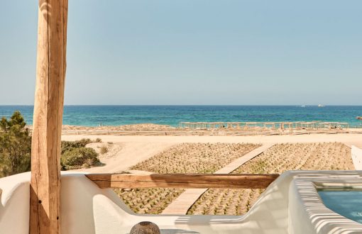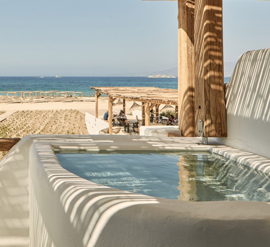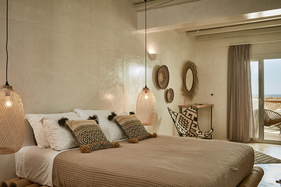 Get ready to experience island life in style, conceived exclusively for couples. Bohemian meets luxury at these 10 gorgeous suites that are just barely 30 feet from the beach of Plaka. While Plaka Beach may be one of the more happening beaches on the island, Naxian on the Beach has taken over a quiet, exclusive spot with its own sunbeds so you can enjoy the very best of this island.