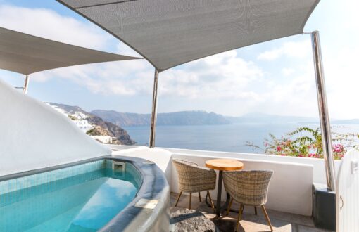 Opening in 2017 and has 7 Suites on the caldera. The Hotel is located 400 meters away from Secret Suites & Spa and guests may use the Restaurant, Spa, parking of this Hotel. All rooms have fantastic views and private hot tubs, and 24-hour reception. Our new all-day lounge resto bar ‘Bliss Lounge Bar’ where you can enjoy a lovely breakfast in the morning, a variety of snacks during the day and sushi bites accompanied by delicious cocktails in the evening, always with the unobstructed Caldera view on your footsteps!