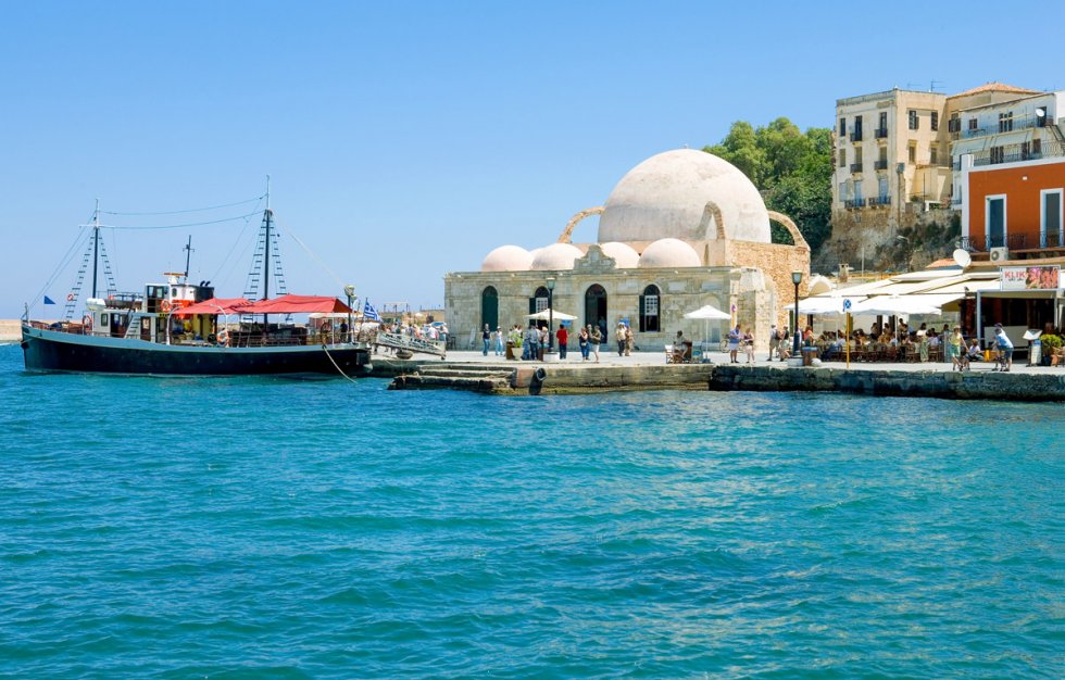 A snapshot of the picturesque harbor in Chania