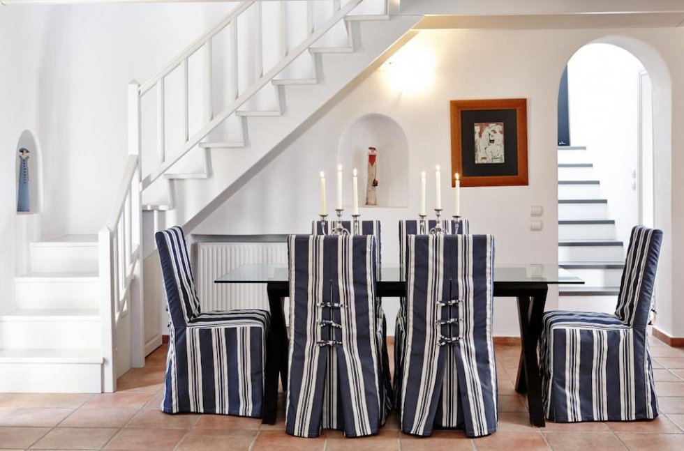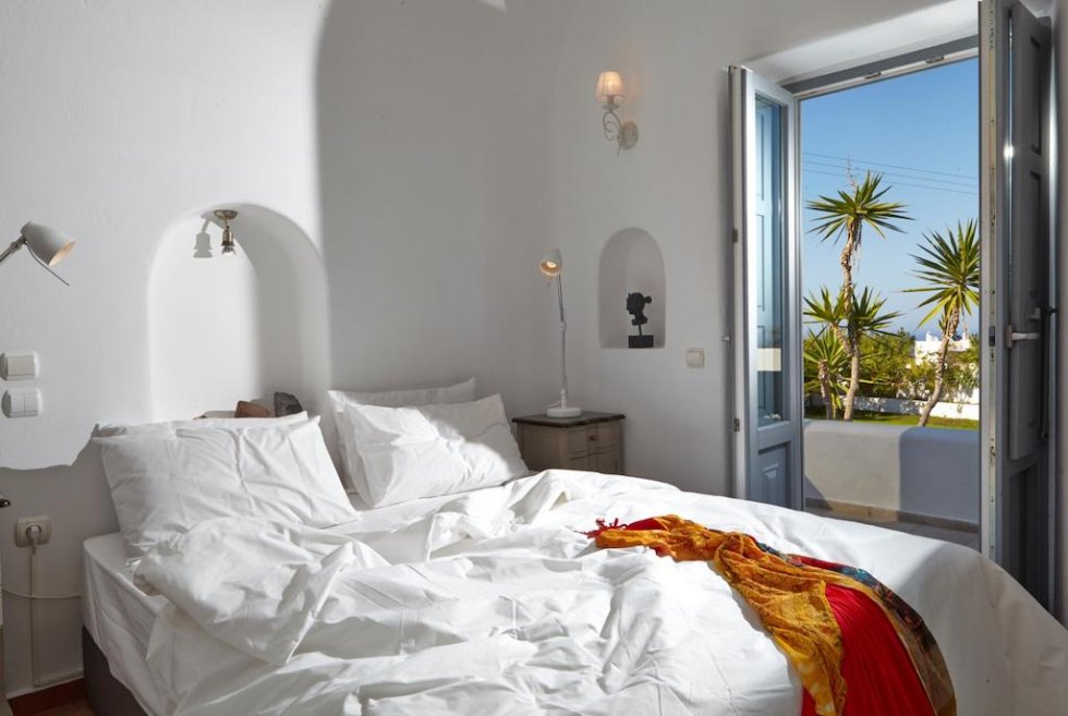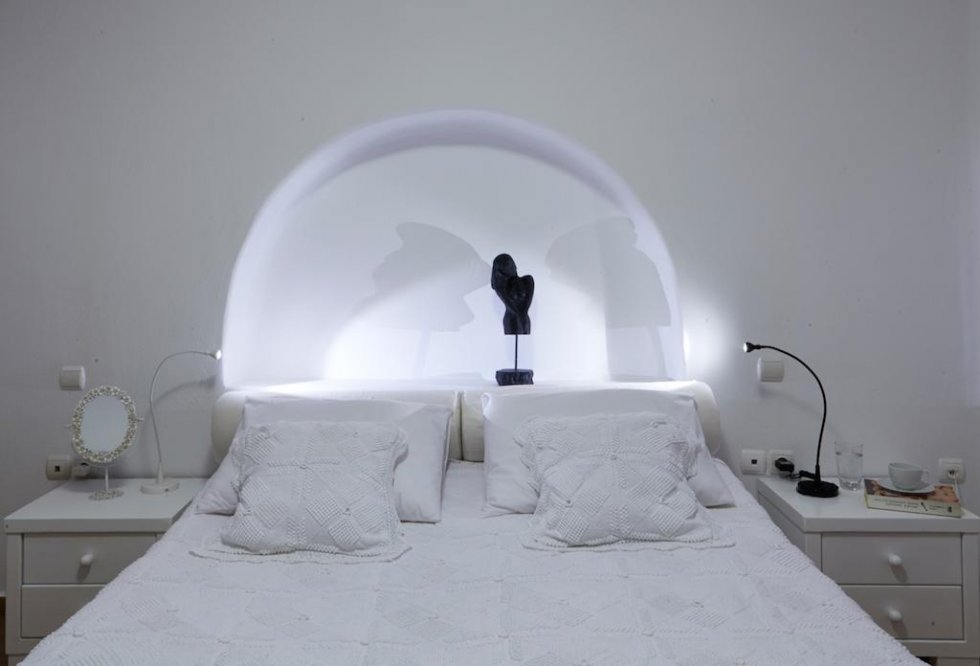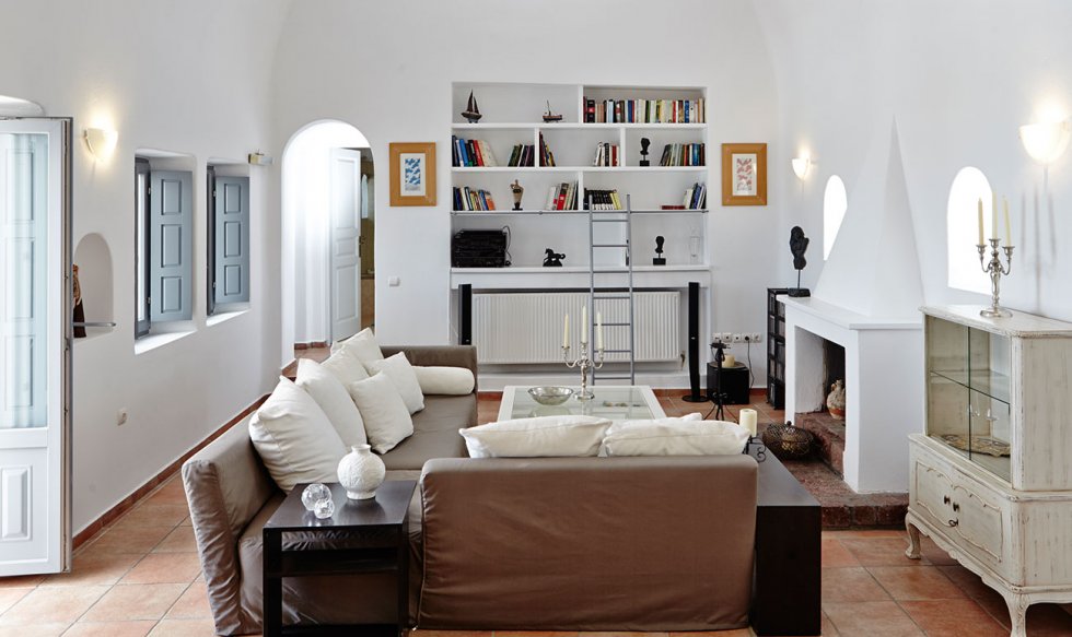 Aleria Villa in Santorini island consists various blue tones combined with traditional cycladic elements, along with the venetian influence in its minimal modern and authentic traditional style, are perspectives designed for the distinctive guest who is able to appreciate a singular kind of comfort, class, and most importantly space and tranquility.